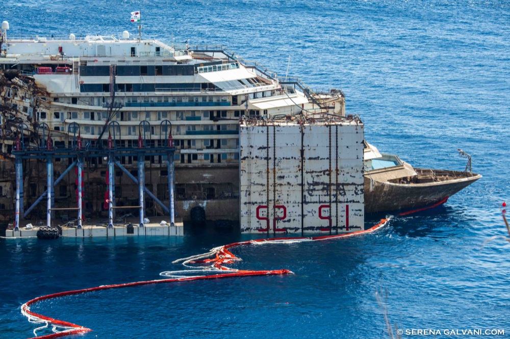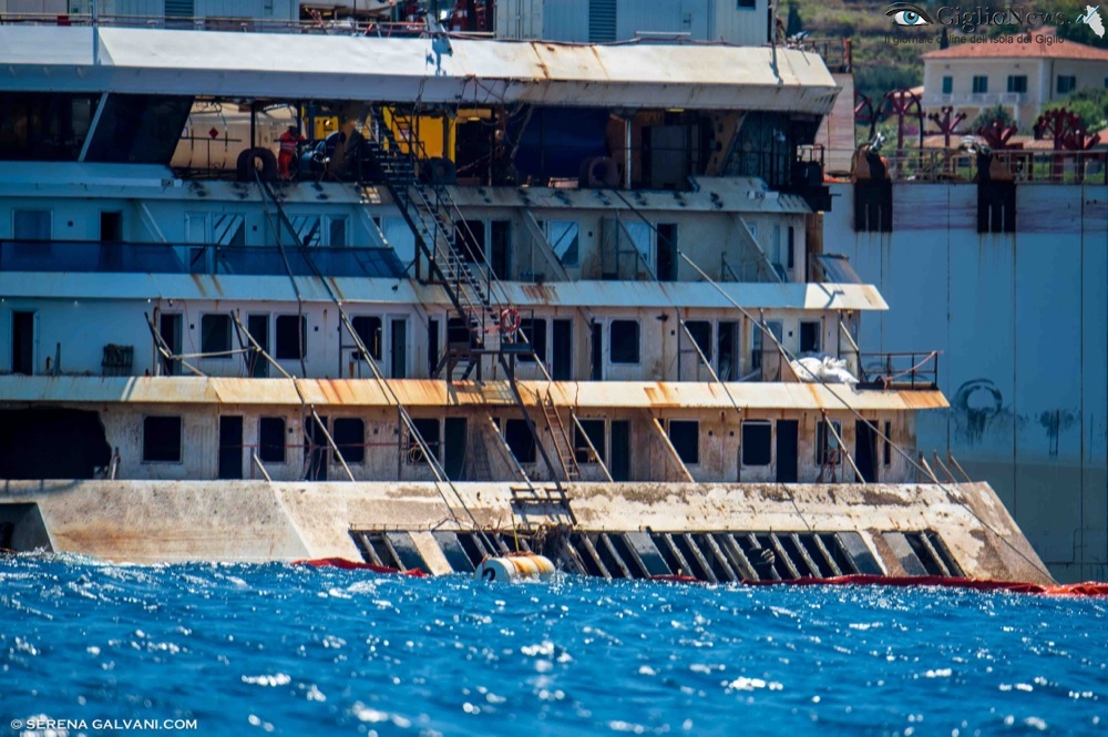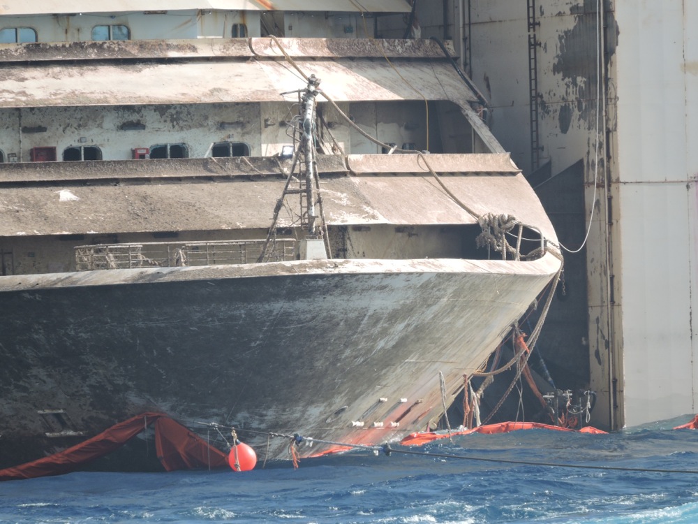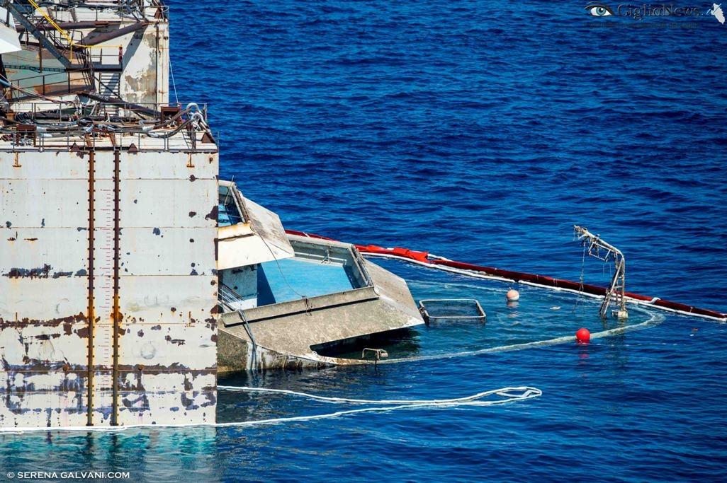 E comunque spero di non essere tacciato di “gufaggine” se mi permetto di osservare che se risulta già problematico governare il relitto quando è appena stato fatto distaccare dalle piattaforme a ridosso della costa isolana figuriamoci quando, ancora più emersa, sarà soggetta ai venti e marosi nel lungo tragitto tra il Giglio e Genova tra il mar tirrenico e quello corso.