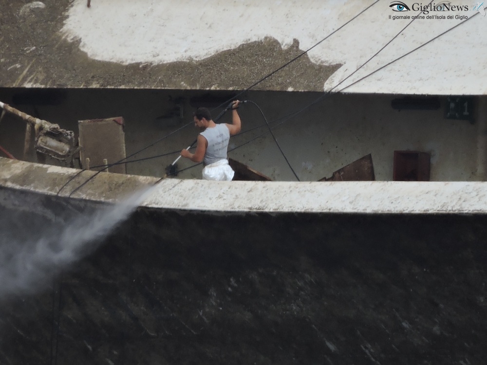 L’emozione Pietro. Anzi nell’ora successiva mi sembrava che stesse andando giù di prora. Tenevo d’occhio i punti scrostati dei cassoni come riferimento. Alle 11,00 Sky news ha annunciato, intervistando Pellegrini, che la poppa era su di buoni 80 cm. Doveva esserci una prima conferenza stampa alle 11,30. Hanno alzato prima la poppa, insomma.