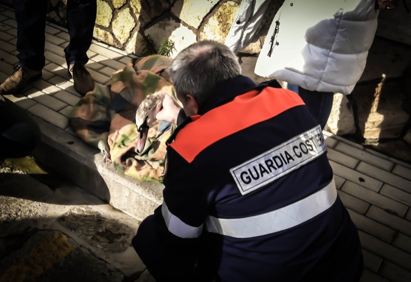 Avvertita la Guardia Costiera della vicina Base Navale dell’ufficio Circondariale Marittimo di Porto Santo Stefano, il personale militare ivi dislocato è subito corso in aiuto dell’animale, recuperandolo ormai allo stremo delle forze e provvedendo ad avvolgerlo in una coperta per dargli un primo ristoro. Interessata la Guardia Ambientale Provinciale, nella persona della sig.ra Antonella Moroni, il cigno è stato trasportato presso il Centro Recuperi Animali Selvatici ed Esotici di Semproniano (GR) per ricevere le cure veterinarie necessarie.