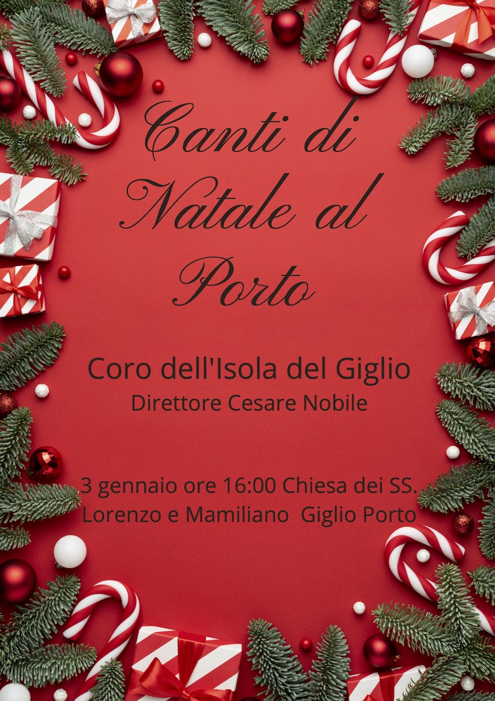 Il Coro dell'Isola del Giglio, diretto dal Maestro Cesare Nobile, si esibirà nel Concerto "Canti di Natale" il prossimo 3 Gennaio 2025 alle ore 16,00 nella Chiesa dei Santi Lorenzo e Mamiliano di Giglio Porto.