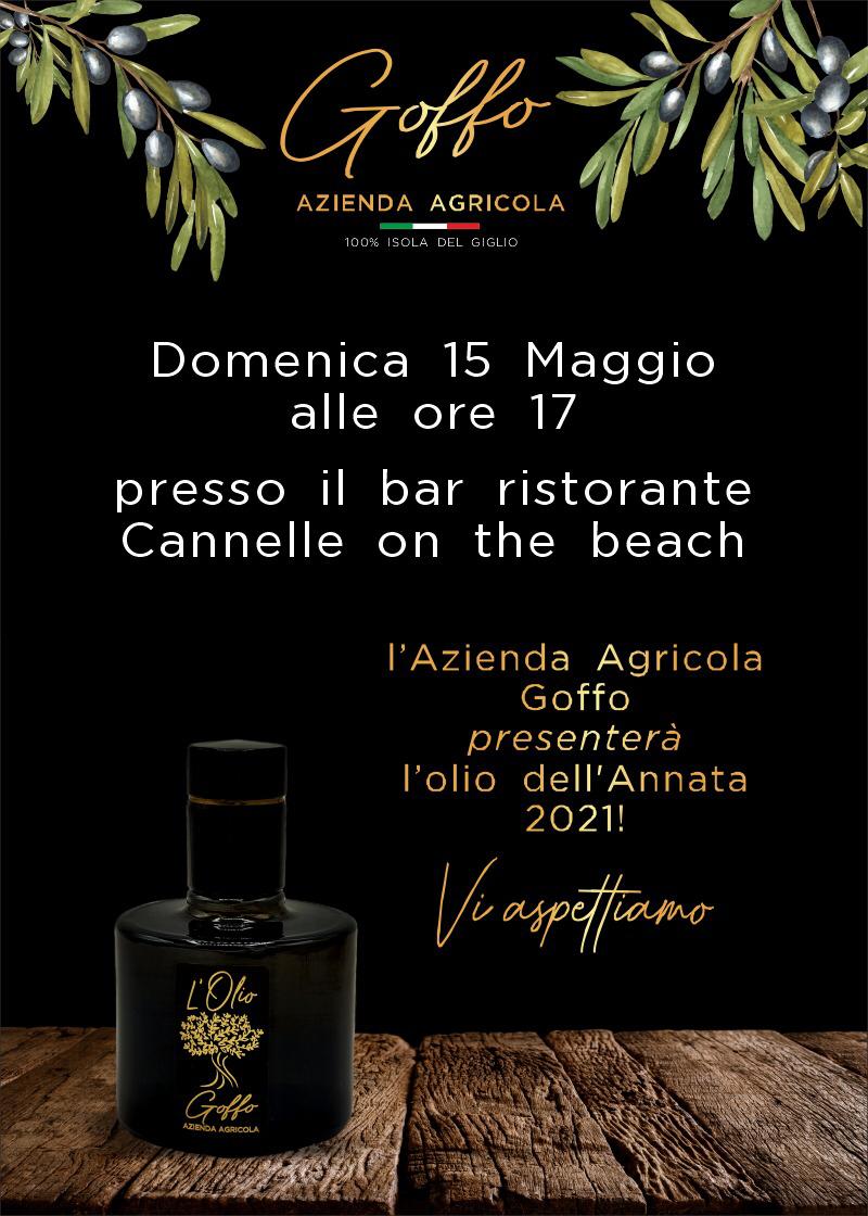 L'azienda invita tutti alla presentazione dell'olio dell'Annata 2021 la prossima domenica 15 Maggio alle ore 17,00 presso il bar ristorante "Cannelle on the Beach".