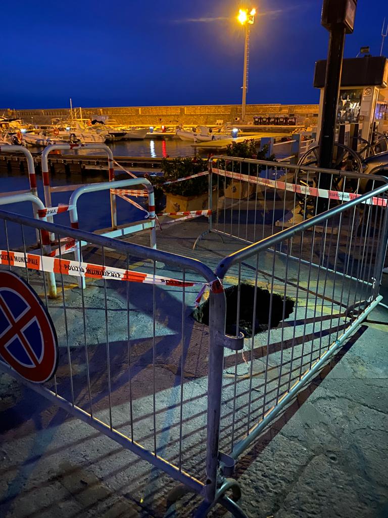Dopo la voragine dei giorni scorsi, prontamente riparata, cede nuovamente la pavimentazione portuale nel piazzale di sbarco dei traghetti, a riprova, come già constatato dagli addetti ai lavori, che l'intera piazza necessita di importanti lavori di riassetto strutturale.