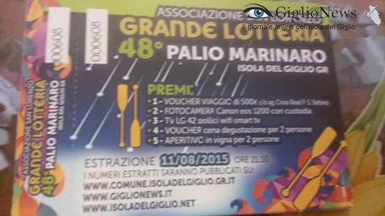L'Associazione San Lorenzo comunica che uno dei premi della Lotteria del Palio Marinaro, estratti lo scorso 11 Agosto, risulta ancora da ritirare.