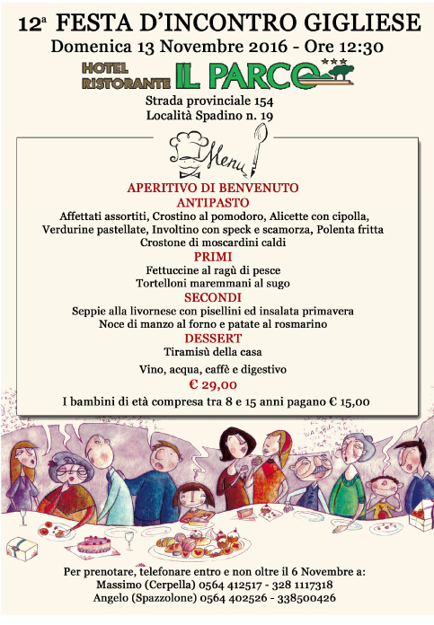 MA ... "SEI GIGLIESE" SOPRATUTTO SE TI UNIRAI A NOI ANCHE QUEST'ANNO PER FESTEGGIARE IL 12° INCONTRO CHE SI TERRA' IL GIORNO 13 NOVEMBRE ALLE ORE 12.30 PRESSO L'HOTEL RISTORANTE “IL PARCO” A GROSSETO.